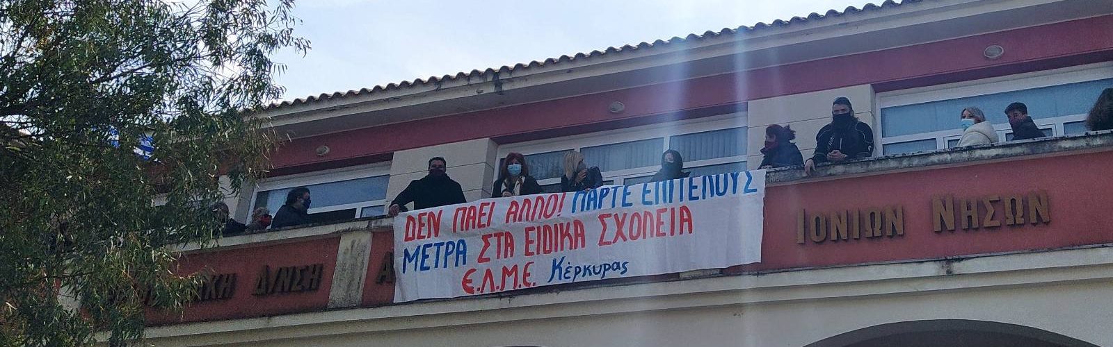 Δυναμική παράσταση διαμαρτυρίας, πραγματοποίησαν τα εκπαιδευτικά σωματεία (ΕΛΜΕ – ΣΕΠΕ – ΣΕΕΑΠΙΝ) την Παρασκευή, 12 Μαρτίου, στην ΠΔΕ Ιονίων Νήσων, για την κατάσταση στα Ειδικά Σχολεία.